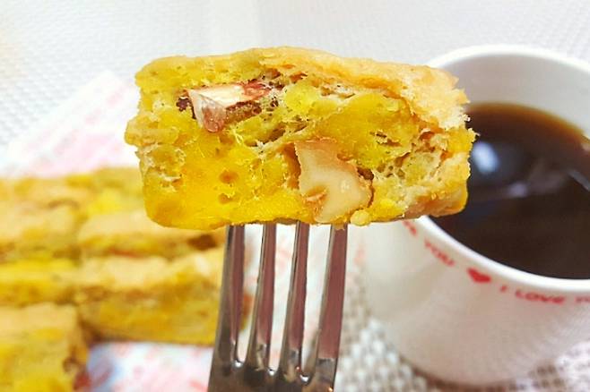 한 개 먹어보니 폭신폭신한 식감에 달달한 고구마, 고소한 견과류가 어우러져 진짜 빵 먹는 느낌이 들면서 맛있습니다. 밀가루 없이 고구마와 계란이 주재료라 건강한 느낌이고 다이어트할 때도 참 좋을 것 같습니다. 오븐기 없이 전자레인지로 쉽게 만들 수 있는 점도 장점이니 한번 만들어 보세요^^*