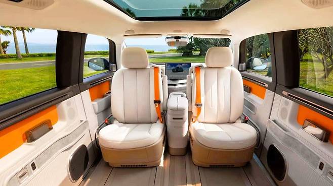 주차공간이 좁은 국내 환경에서도 문콕 걱정 없이 개방 가능한 점은 실사용자에게 확실한 매력 포인트다. 차체 크기는 기아 카니발보다 작지만, 전기차 플랫폼 덕분에 휠베이스는 더 길어 내부 공간 효율은 오히려 앞선다는 평가다.