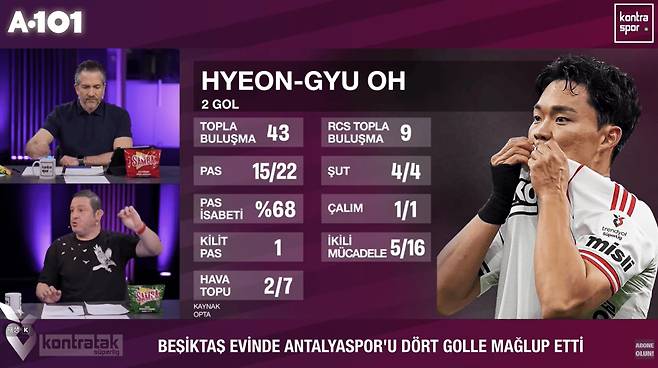 튀르키예 스포츠 전문 채널 '콘트라스포르'는 경기 후 리뷰 방송을 통해 이날 리그 5, 6호골을 터뜨린 오현규의 플레이를 집중 조명했다.