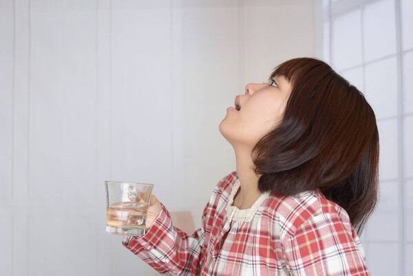 가글 후 미지근한 물로 입안을 여러 번 헹군 뒤, 평소처럼 양치질을 합니다.