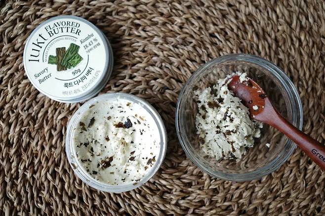 ‘독특한’이라는 표현을 쓴 데엔 이유가 있다. 우리가 흔히 떠올리는 버터와는 사뭇 다르기 때문이다. 다시마 버터, 깨소금 갈릭 버터, 산딸기 루바브 버터, 초당 옥수수 버터 등 이름부터 흥미를 자극한다. 이 버터들은 흔히 ‘컴파운드 버터(Compound Butter)’ 혹은 ‘플레이버 버터(Flavored Butter)’라 불린다. 무염 또는 발효 버터에 각종 재료를 섞어 풍미를 더한, 일종의 ‘버터 업그레이드판’이다.