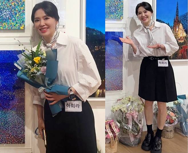배우 하희라가 우아한 분위기의 전시회 나들이룩으로 시선을 사로잡았습니다.