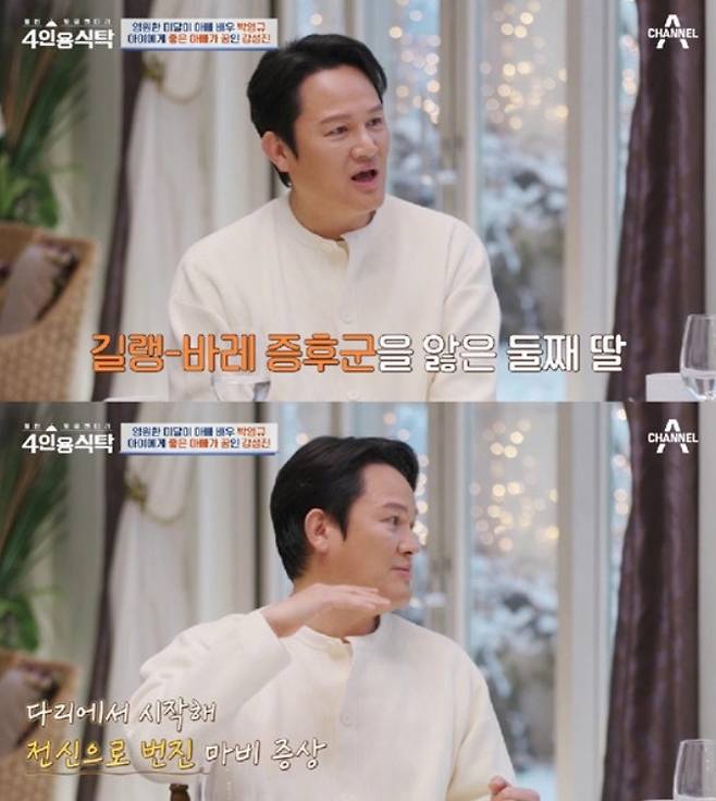 강성진은 "둘째 딸이 길랭바레 증후군을 앓았다. 저도 처음 들었다. 바이러스가 들어왔을 때 저항력이 세서 싸우다가 신경세포를 건드리는 거다"라며 딸의 아픔을 고백했다.
