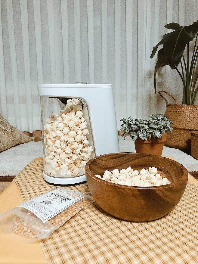 배치를 바꾼 저희 집을 인스타에 올린 걸 보고는 친구가 팝콘기계도 선물해 줘서 더 재미있게 즐겼습니다.