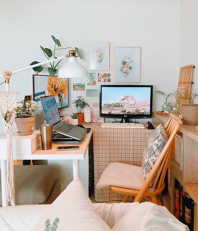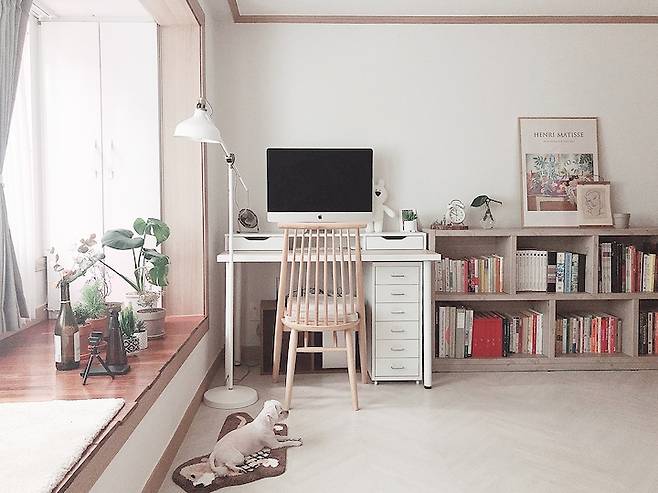 재택근무하는 동안 정말 너무 편하게 잘 썼던 공간이에요. 사실 이 공간이 배치를 바꾸고 가장 만족스러운 공간입니다.