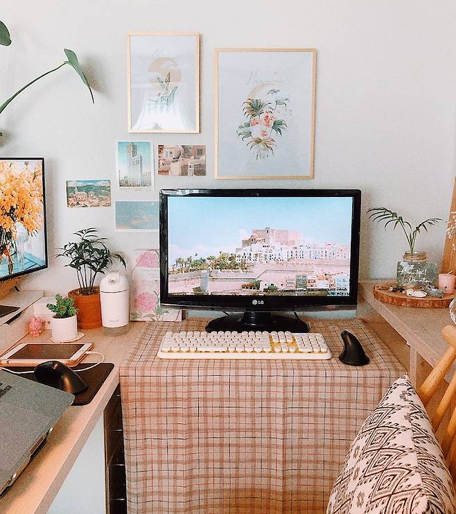책상 덮개 천도 바꿔주면 느낌이 또 달라집니다.