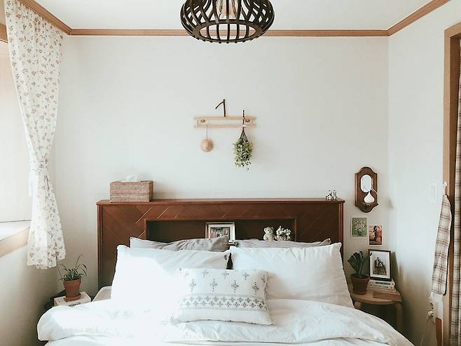 예전 침실보다 사이즈가 작아지면서 뭔가 안정감이 확 들었어요. 잠과 휴식의 공간이 명확해진 것 같아서 만족스러워요.