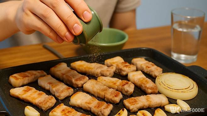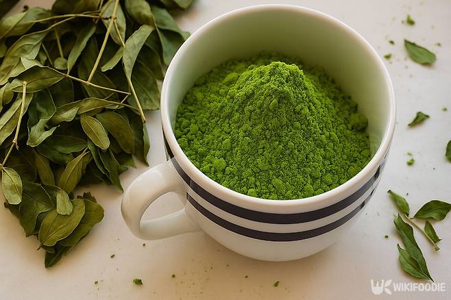 4. 산초잎 가루를 넣고 다시 섞는다. 이때 뭉치지 않게 골고루 젓는다.
