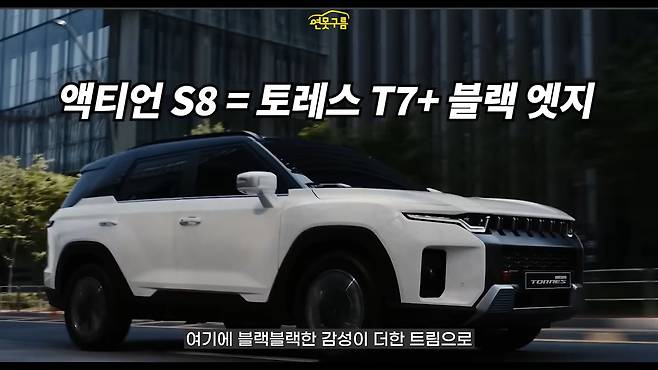 액티언 하이브리드 S8 트림은 토레스 하이브리드의 T7 트림과 최상위 블랙엣지 트림의 주요 사양들을 적절히 조합하여 구성된 것이 특징이다. 두 차량의 파워트레인은 1.5 터보 GDI 가솔린 엔진과 듀얼테크 하이브리드 시스템, 그리고 1.83kW의 대용량 배터리 등 완전히 동일하게 제공되고 있다. 파워트레인을 구성하는 서스펜션과 디스크 브레이크 시스템 역시 완벽하게 동일한 사양을 갖추고 있는 모습이다.