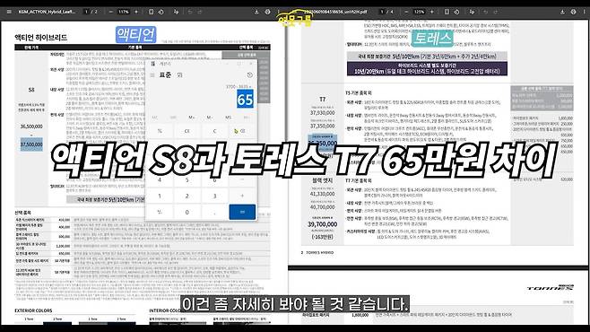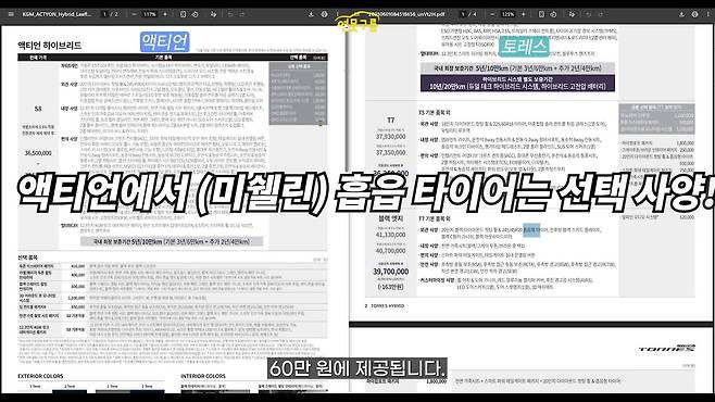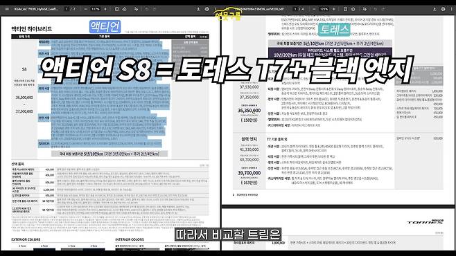 이는 토레스 하이브리드 T7 고급 트림의 가격인 3,635만 원과 비교했을 때, 액티언 하이브리드의 중간 가격을 약 3,700만 원으로 가정하면 불과 약 65만 원의 차이를 보이는 것으로, 예상보다 가격 격차가 현저히 좁혀지고 있는 상황이다.
