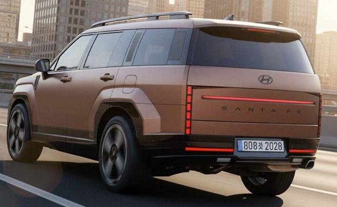 측면부는 이번 변화의 백미입니다. 휠 하우스를 감싸는 볼륨감은 마치 잘 관리된 운동선수의 근육질 몸매를 연상시키며, 뒤로 갈수록 길게 뻗은 윈도우 라인은 실내에서 누릴 개방감을 밖으로 투영합니다. 이는 싼타페가 도심형 SUV를 넘어, 전문적인 아웃도어 기어로서의 정체성을 확고히 했음을 의미합니다.