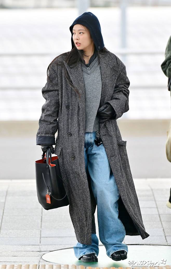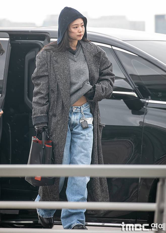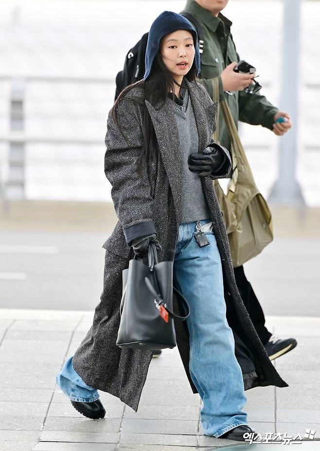 그날 공항에 등장한 제니의 차림은 편안함이라는 공항 패션의 공식에서 살짝 벗어나 있었고, 대신 분명한 메시지를 남겼다.