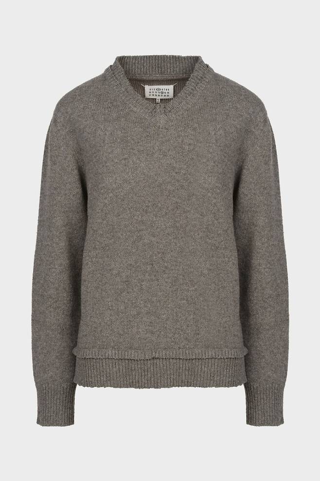 안에 매치한 엘보우 패치 스웨터는 마르지엘라의 정체성을 가장 직관적으로 보여주는 아이템이다.