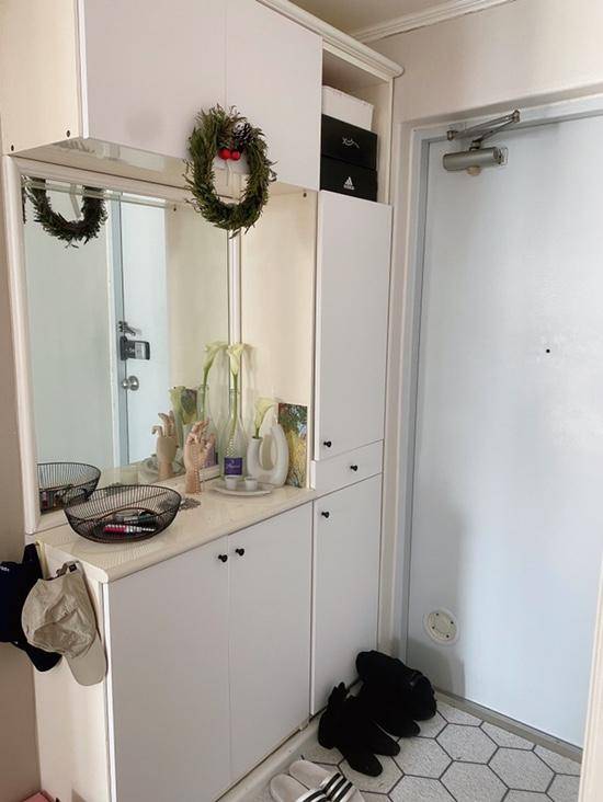 신발장 옷 입히기 완성! 컬러만 바뀌어도 분위기가 무척 화사해집니다.