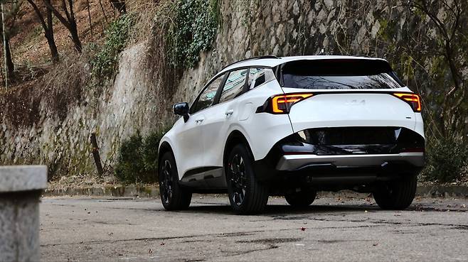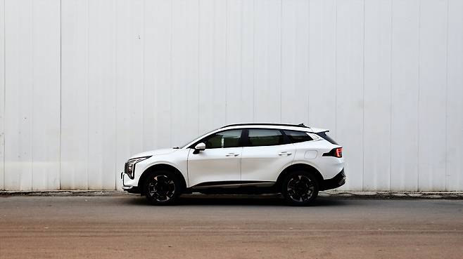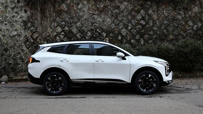 측면 디자인이다. DRL 라인이 헤드램프의 테두리를 장식하면서, 측면에서도 SUV 다운 웅장한 분위기가 느껴지게 된다. 또, 프런트 범퍼 끝단이 역슬렌트 형상으로 강조되니 역동적인 실루엣이 나타나기도 한다. 그리고 페이스리프트 이후 휠 디자인이 변경되었다. 19인치 전면 가공 휠은 테두리 라인만 은색으로 강조되면서 묵직하고 고급스러운 모습이다. 뒤로 갈수록 상승하는 벨트라인이나 차체 볼륨감을 키우는 웨이스트 라인, D필러의 알루미늄 가니시 등등 스포티지만의 개성적인 디자인 요소들이 눈에 띈다.