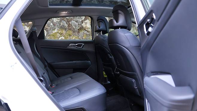 뒷좌석 공간이다. 우선 공간의 여유로움이 눈에 듼다. 레그룸의 깊이감이나 면적 모두 양호하고, 2열 시트의 수동식 리클라이닝 각도가 꽤나 자유로운 편이다. 단지 체감상으로는 중형 SUV와도 견줄 수 있는 수준이었다. 파노라마 선루프가 적용되어 시야 개방감까지 개선된다. 편의 장비로는 시트 암 레스트와 열선, 에어벤트, 충전 포트 정도가 있다. 전동 트렁크 기능 역시 탑재되어 있으며, 2열 원터치 폴딩이 가능하다. 2열 폴드&다이브 시트를 적용하여 공간을 넓게 쓸 수 있기도 하다. 트렁크 매트 아래에도 활용할 만한 공간이 남아있다.