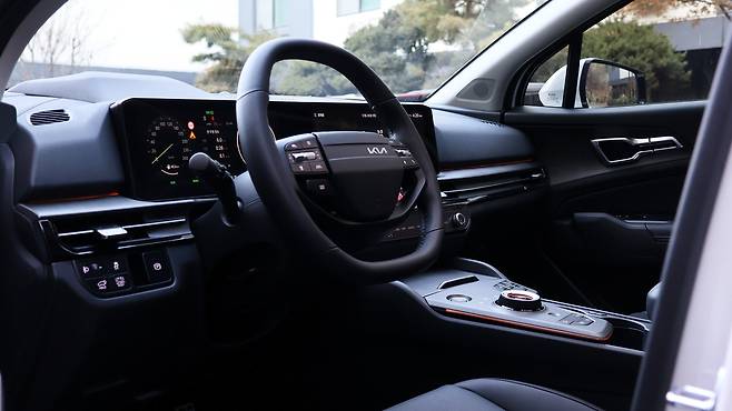 간결함이 느껴지는 실내 디자인이다. 12.3인치 병렬 스크린을 활용한 파노라믹 디스플레이와 HUD가 인포테인먼트를 구축한다. 차세대 운영체제 CCNC가 접목되어 디지털 UI의 완성도가 높아졌다. 센터페시아는 전환 조작 방식을 유지한다. 새롭게 적용된 그립 감지 스티어링 휠은 더블 D 컷 형태의 디자인으로 주행모드 변경 버튼까지 배치된다. 다이얼 방식 기어노브를 포함한 센터 콘솔의 레이아웃은 기존과 동일하다. 대신 우드그레인 소재가 고급스럽고 중후한 느낌을 주며, 엠비언트 라이트는 화려함을 책임진다.