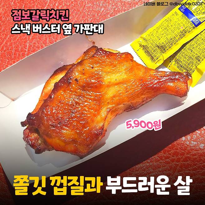 점보갈릭치킨은 훈제오리st 맛인데 껍질이 쫄깃하고 살이 부드러워서 정말 맛있게 먹을 수 있었어요. 다만 크기가 크고 살코기가 많아서 하나만 먹어도 배부를 정도이니 다양한 주전부리를 노리신다면 전략적으로 구매하셔야 할 듯요?!