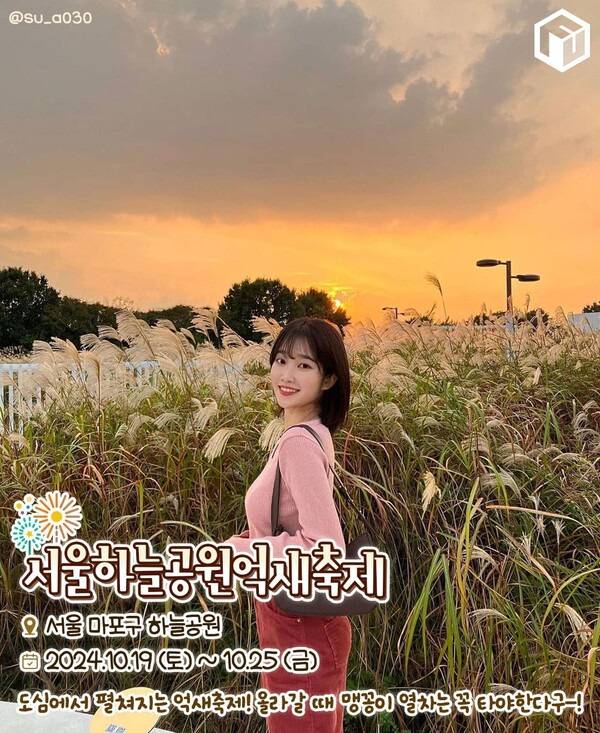 2024 서울 하늘공원 억새축제는 10월 19일 토요일부터 10월 25일 금요일까지 7일간 개최됩니다. 서울 하늘공원은 과거 쓰레기 매립지를 시민들의 휴식공간으로 탈바꿈한 곳인데요. 매년 가을 면적 약 58,000평 규모의 들판에 은빛 억새가 일렁이며 도심 속 장관이 펼쳐집니다.