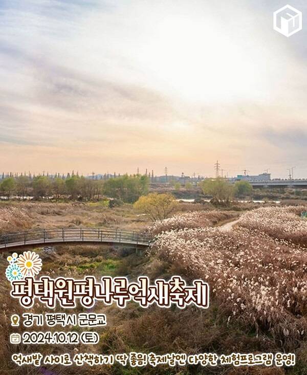 서울 근교에서 펼쳐지는 2024 평택 원평나루 억새축제입니다. 평택 억새축제는 10월 12일 단 하루동안만 진행되는데요. 축제 당일 억새풀 놀이터와 승마체험 등 다채로운 체험 부스가 마련되어 남녀노소 모두가 즐길 수 있을 것으로 보입니다.