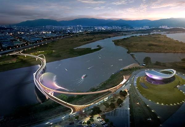 | ▲ 디아크 문화관광 활성화사업 조감도. 대구시는 이렇게 화려한 관광 교량을 세계적 습지인 달성습지 초입에 만들겠다 하고 있다. |