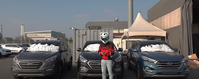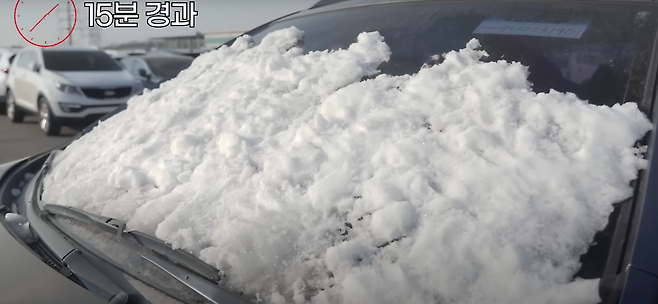 차량은 총 세대를 준비하였으며, 차량당 각기 다른 제품 한 종류씩 세 가지를 준비해서 정말 광고 영상처럼 눈이 녹는지를 알아보도록 하겠습니다. 광고 및 상세페이지 내용에는 1분이면 모두 제거가 되어 운전이 가능하다는 이야기가 실어져 있었습니다.