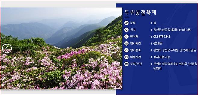 두위봉은 해발 1,466m의 고산지대로, 정선 신동읍과 사북읍을 가로지르며 아득한 백두대간의 기운을 담고 있습니다. 철쭉이 만개하는 이 시기엔 마치 산 전체가 붉은 물결로 출렁이는 듯한 풍경이 펼쳐지죠. 등산과 자연을 사랑하는 분들이라면 이보다 더한 봄 여행지가 없을지도 모르겠습니다.