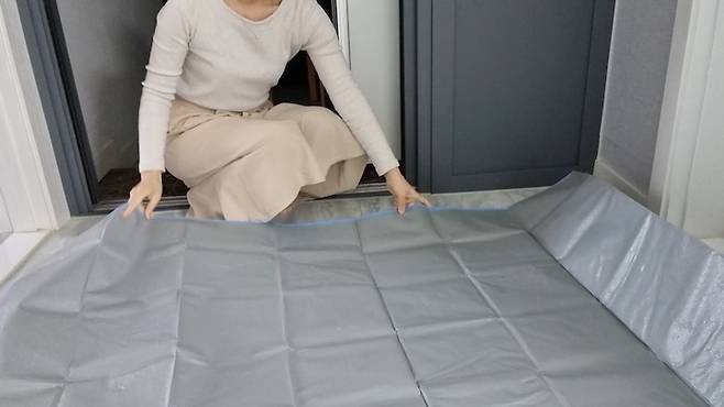 물건들을 꺼내기 전 먼저 커다란 돗자리를 펼쳐줍니다.