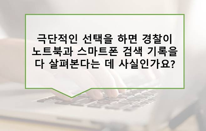 바로 법원으로부터 압수수색 영장을 발부받아, 검색 데이터가 쌓여 있는 포털의 데이터베이스를 확보하는 것 뿐이죠. 수사기관 뿐만 아니라 포털 사이트도 “영장 없이 검색 기록을 (수사기관에) 제공하는 일은 전혀 없다”고 강조하죠.