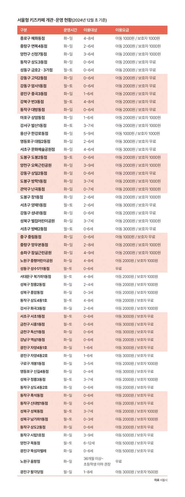 신발을 벗기도 전에 네 살 쌍둥이 아이들은 “와” 하고 환호성을 내지르더니 쏜살같이 안으로 뛰어들어갔습니다. “예약 확인하고 들어가야지”라는 엄마의 말에는 아랑곳 않고 이미 아이들은 미끄럼틀 위로 올라간 뒤였습니다. 서울 동작구에 있는 ‘서울시 제1호 시립 서울형 키즈카페(이하 시립 1호점)’에서 흔히 볼 수 있는 풍경입니다.
