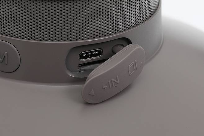 조작부 옆에는 타원형의 작은 덮개가 있는데, 열어보면 안쪽에 충전용 USB 포트와 마이크로SD 슬롯이 나타난다. 음원이 저장되어 있는 마이크로SD 메모리를 삽입하면 재생이 가능하다는 것을 짐작할 수 있다.