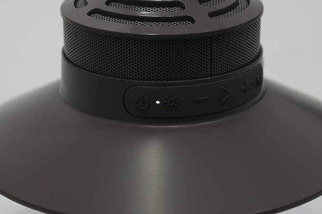 브리츠 감성 랜턴 블루투스 스피커 BZ-CML200의 스피커 그릴 부분 바로 아래를 보면 조작부가 보인다. 전원부터 모드 변경까지 여섯 개의 버튼으로 된 조작부는 고무 재질로 되어있어서 습기의 침입을 막아준다.