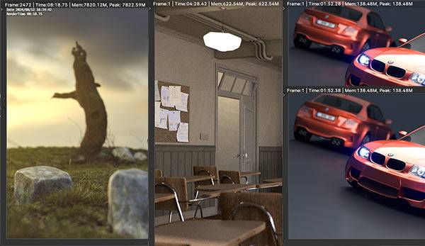 다음은 블렌더 테스트를 진행했다. 블렌더 테스트는 각기 다른 모델로 테스트를 진행하였는데 각각 8분 18초, 4분 28초, 1분 52초, 1분 52초를 기록하였다. 특히 차량 렌더링은 CPU와 GPU를 테스트하였지만 동일한 수준이 기록되었다.