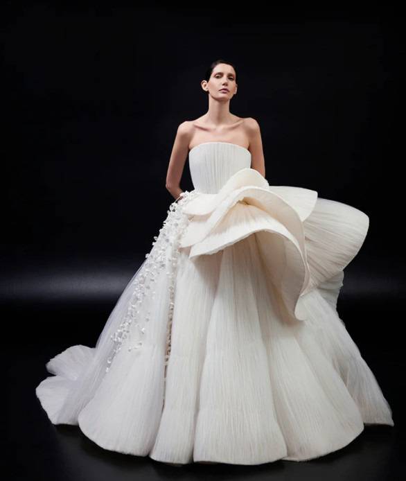 1부 드레스는 플리츠 튤을 활용해 입체적인 실루엣으로 완성된 드레스로, 화려하지만 우아한 매력을 가지고 있답니다.