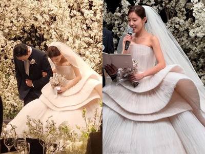 이날 효민은 온통 벚꽃으로 꾸며진 화려한 버진로드를 걸었는데요, 이때 신부 효민이 입은 웨딩드레스가 요즘 화제에 올라있어요.