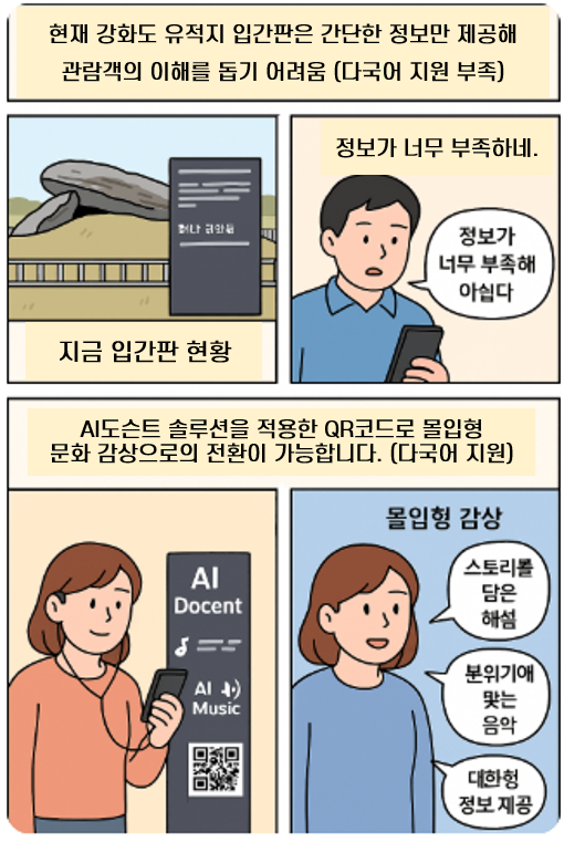 유네스코 세계유산으로 등재된 유산은 그 가치를 전 세계인이 이해할 수 있도록 다국어 해설을 제공해야 한다. 하지만 대부분의 해설은 직역 또는 간단한 번역에 그쳐 문화적 맥락과 감성적 깊이를 놓치는 경우가 많다. 『K-컬처, AI도슨트로 날개를 달다』에서 제시하는 AI 기반 다국어 감성 해설은 각 언어 사용자들의 문화 코드에 맞는 스토리텔링 방식으로 구성되어, 정서적 공감과 역사적 이해를 동시에 전달할 수 있다. 나아가 이 솔루션은 학생들을 대상으로 하는 교육 프로그램에도 확장 적용이 가능하여, 반구대 암각화를 중심으로 한 AI 유산 교육 플랫폼 개발에 매우 효과적인 기반이 된다.