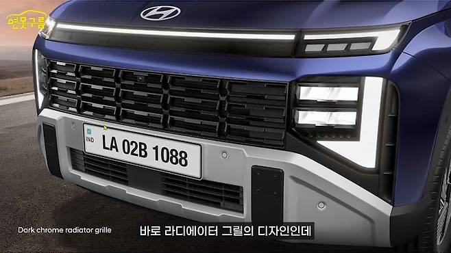 라디에이터 그릴은 다크 크롬 디자인의 네모난 형상으로 와일드한 느낌을 준다. 북미 대형급 SUV에서 볼 수 있었던 네모난 형태의 그릴이 소형급까지 확대 적용된 것으로 보인다. 이 라이트 영역이 켜지는 것만으로도 상당한 존재감을 느낄 수 있으며, 방향지시등 작동 시에는 더욱 인상적인 모습을 연출할 것으로 예상된다.