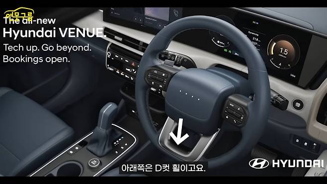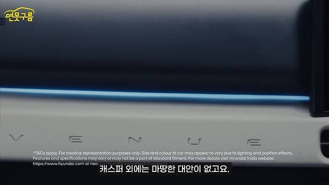 세부적으로는 송풍구 디자인이 새로워졌고, 글로브 박스 위쪽에 베뉴 레터링이 새롭게 추가됐다. 이런 레터링 적용은 국내에서도 보기 힘든 사양이다. 베뉴와 같은 소형급에서 12.3인치 통합형 디스플레이는 차량이 작아서 더욱 크게 느껴지는 효과가 있다.