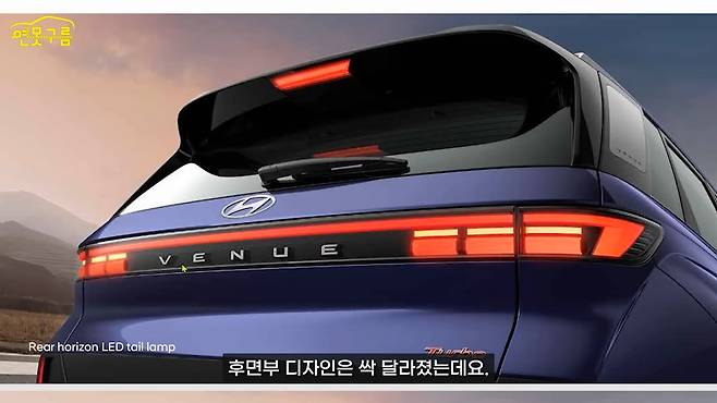 가장 눈에 띄는 변화는 전면부 디자인이다. 신형 베뉴는 DRL(주간주행등)이 'ㄷ자' 형태로 전면을 완전히 감싸는 디자인을 채택했다. 기존 베뉴의 경우 현대차의 이전 디자인 언어를 따랐다면, 신형은 최신 디자인 요소를 대거 적용한 것으로 보인다.