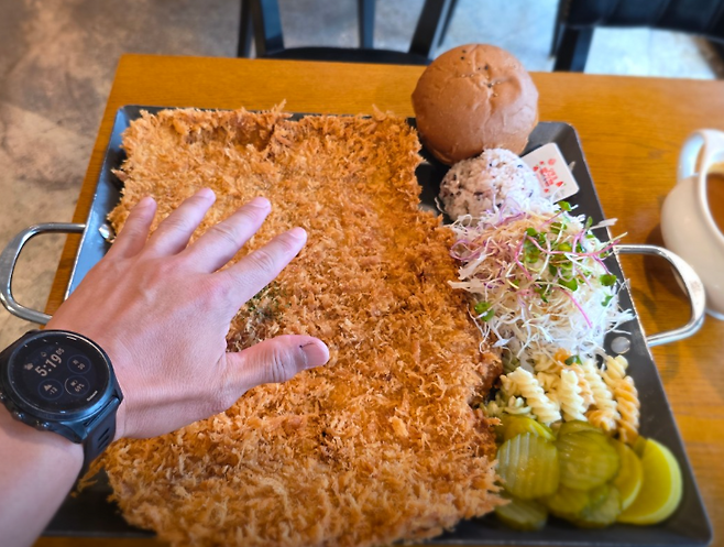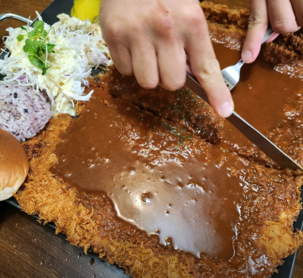 ▶ 흑돼지 왕돈까스는 접시를 꽉 채우는 크기가 가장 큰 특징입니다.