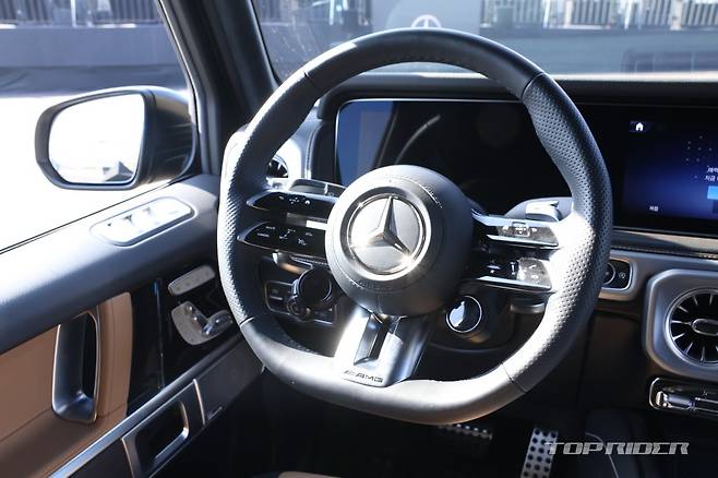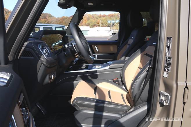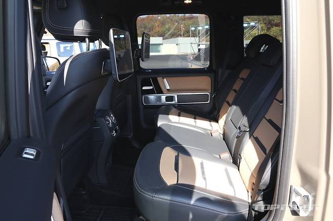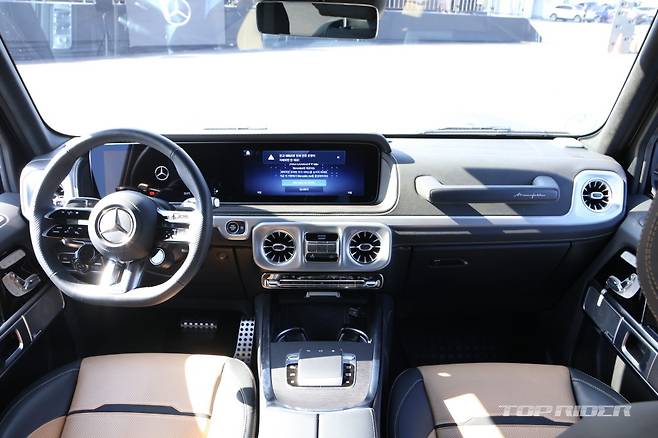 신형 AMG G63 실내에는 나파 가죽으로 마감된 AMG 퍼포먼스 스티어링 휠, 오프로드 콕핏 디스플레이 등이 배치됐다. 스티어링 휠에는 AMG 전용 버튼이 적용됐다. 특히 운전석 디스플레이에는 심도 있는 공간감을 연출할 수 있는 슈퍼스포츠 모드가 새롭게 내장됐다.