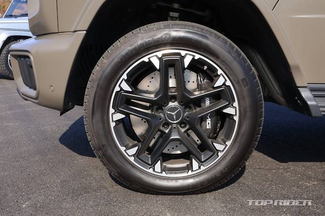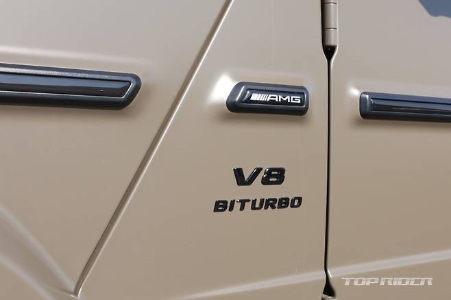 신형 AMG G63 전면부에는 공기흡입구 앞쪽에 3개의 수직 루브르가 포함된 새로운 AMG 전용 범퍼, 범퍼 스테인리스 스틸 인서트 등이 탑재됐다. AMG 연료 필러 캡은 실버 크롬 소재로 제작됐다. 실버 컬러 브레이크 캘리퍼, 20인치 AMG 휠, 스포츠 배기 시스템 등을 제공한다.