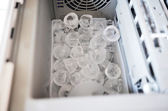 그 결과, 최근 출시된 모델은 하루 제빙량이 기존 대비 200%(3.8kg)나 늘었고, 저장 용량도 1.0kg으로 대폭 커졌다. 하루에 172알 정도에 불과했던 일 제빙량이 345알로 늘어났고, 저장 용량도 50알에서 90알로 증가한 것. 이 정도면 일반적인 가정에서 아이스 음료를 수시로 마시기엔 충분한 양이다.