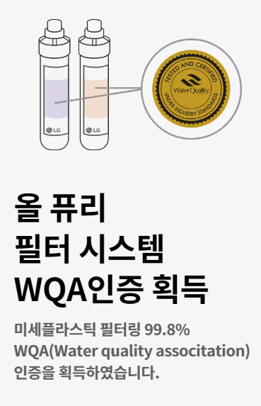 특히 물의 질에 민감한 사람이라면 LG의 '올 퓨리 필터 시스템'에 주목할 필요가 있다. 단순히 깨끗하다는 말로 때우는 게 아니라, WQA(미국수질협회) 인증을 획득하며 그 실력을 입증했다. 중금속 9종과 노로바이러스는 물론, 최근 이슈인 미세플라스틱을 99.8%까지 필터링해낸다. 말 그대로 아리수를 에비앙급으로 정제해내는 셈이다.