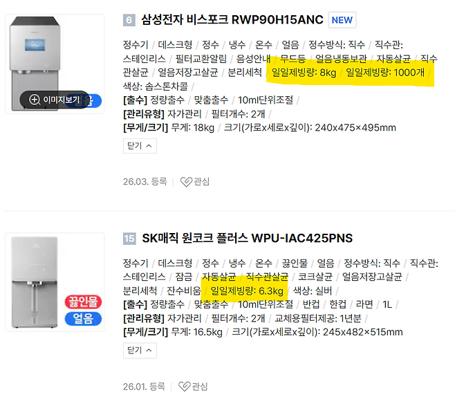 제빙량(3.8kg) 늘었다지만... 경쟁 제품에 비해서는?