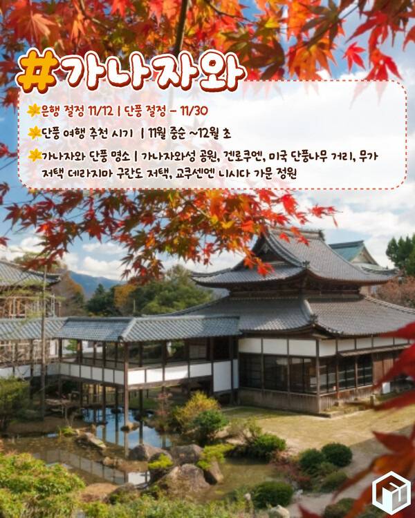 가나자와 단풍 여행 추천 시기 및 단풍명소