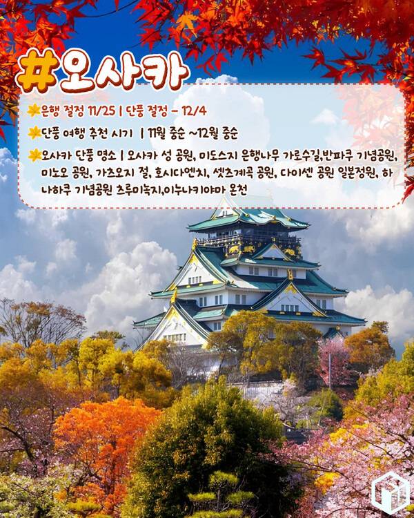 오사카 단풍 여행 추천 시기 및 단풍명소
