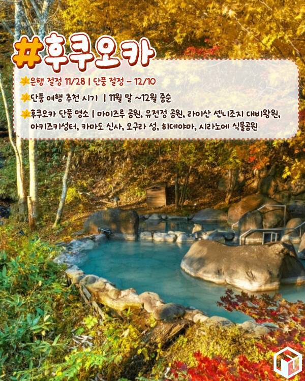 또 한국분들이 많이 방문하는 도쿄는 12월 1일, 오사카는 12월 4일, 후쿠오카는 12월 10일 단풍이 절정에 달할 것으로 예상됩니다.