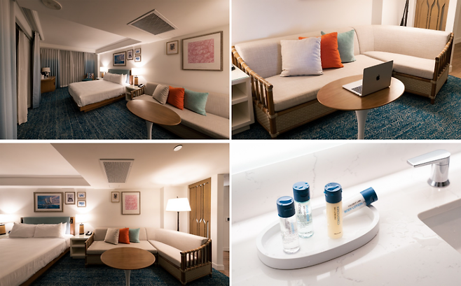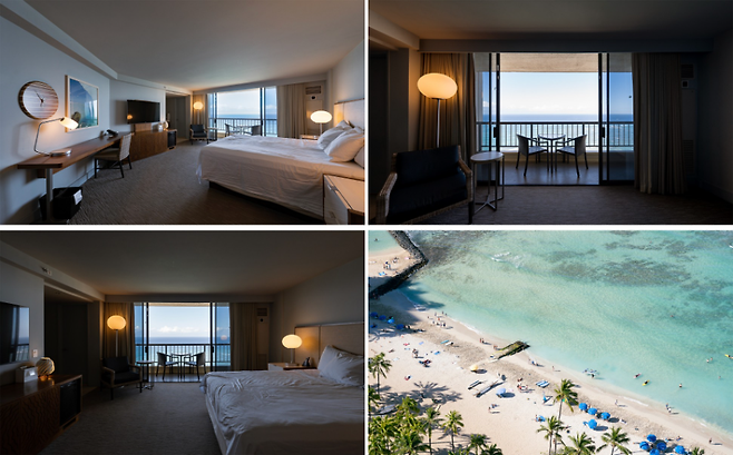 객실 내부는 차분한 해안 색조와 고급스러운 마감재로 디자인했다. 커피 머신과 캡슐 커피가 있다. 이외에도 바다 전망을 감상할 수 있는 발코니가 일품이다. 명소인 다이아몬드 헤드가 호텔에서 보인다. 세계적으로 유명한 와이키키 서핑과 서퍼의 모습도 조망할 수 있다.