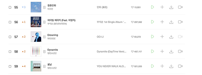 드라우닝은 이달 초 만해도 멜론 900위권이었는데,